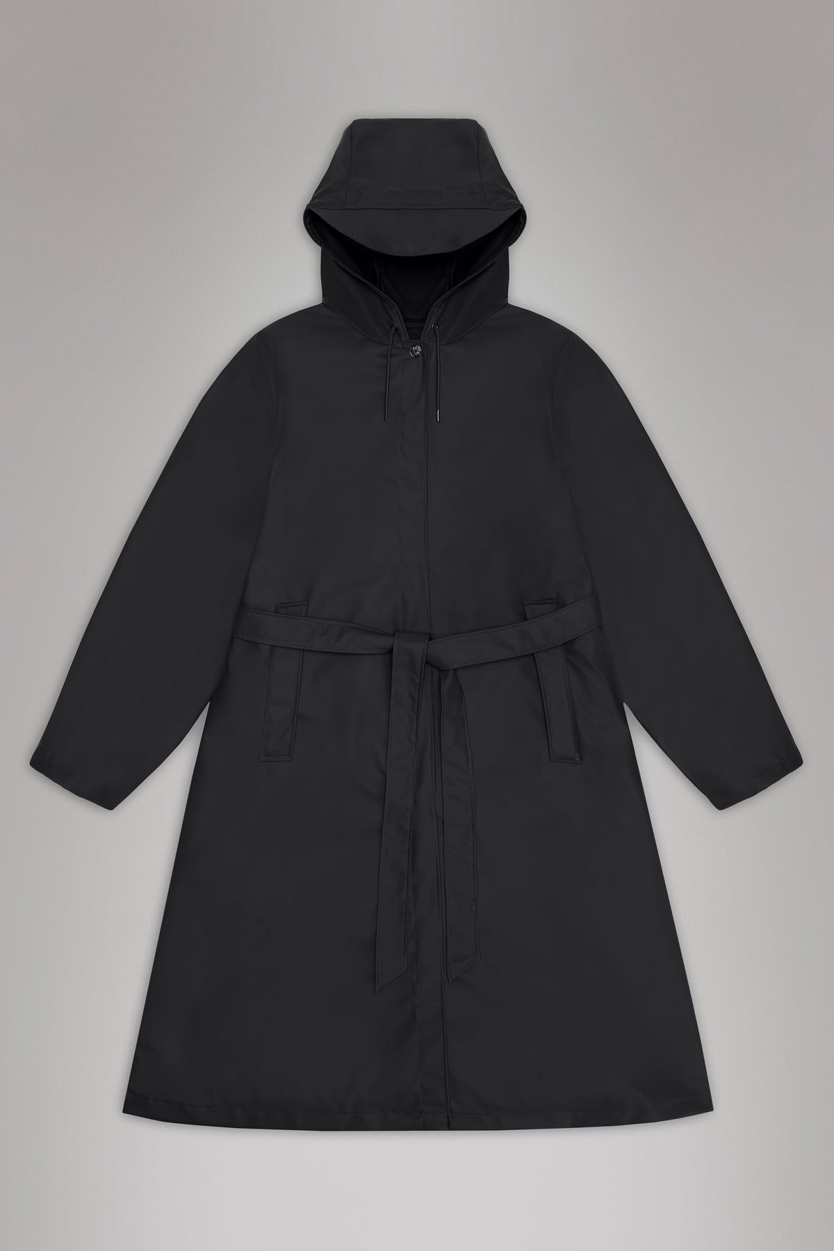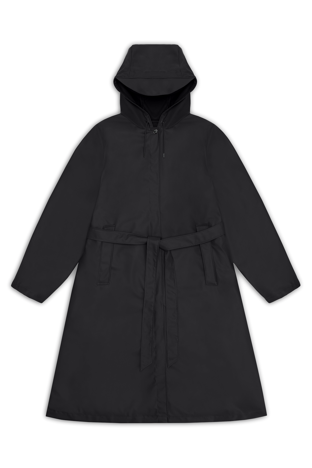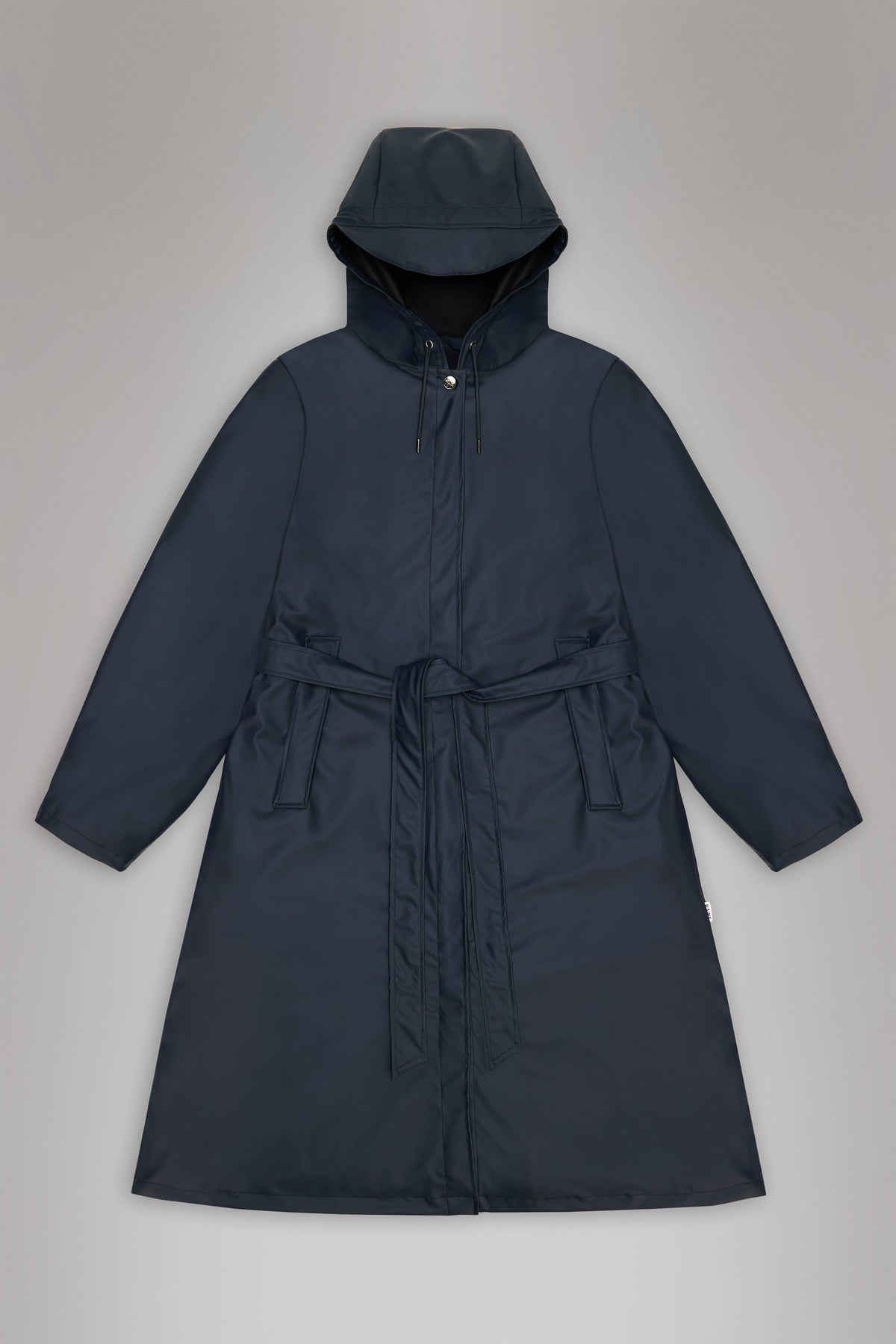 De A-lijn Lange Jas is een stijlvolle regenjas voor dames met een elegant uitlopende A-vorm en een tailleceintuur die het silhouet op een flatterende manier benadrukt.
